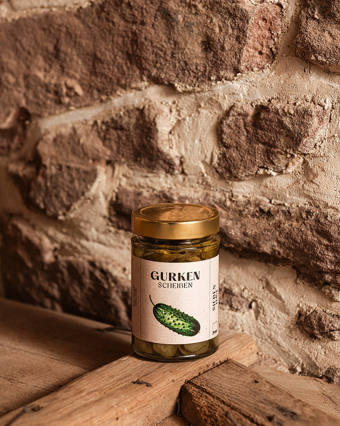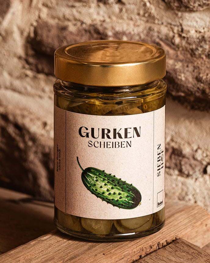 Fein geschnitten, knackig eingelegt – unsere Gurkenscheiben sind die heimlichen Stars auf jedem Burger oder Pausenbrot. Regional gewachsen, mit Liebe verarbeitet.