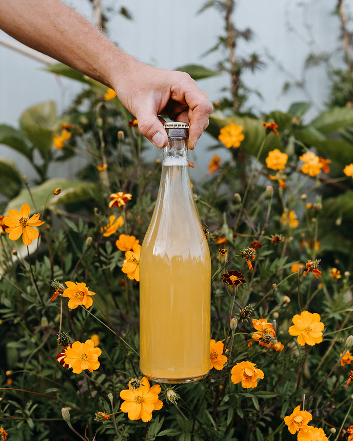 Unser Cidre entsteht aus handverlesenen Äpfeln alter und neuer Sorten – vollreif geerntet, sortenrein vergoren, dann individuell verschnitten. Traditionelle Flaschengärung und lange Reife auf der Hefe sorgen für feine Perlage, komplexen Geschmack und vielfältige Aromen.